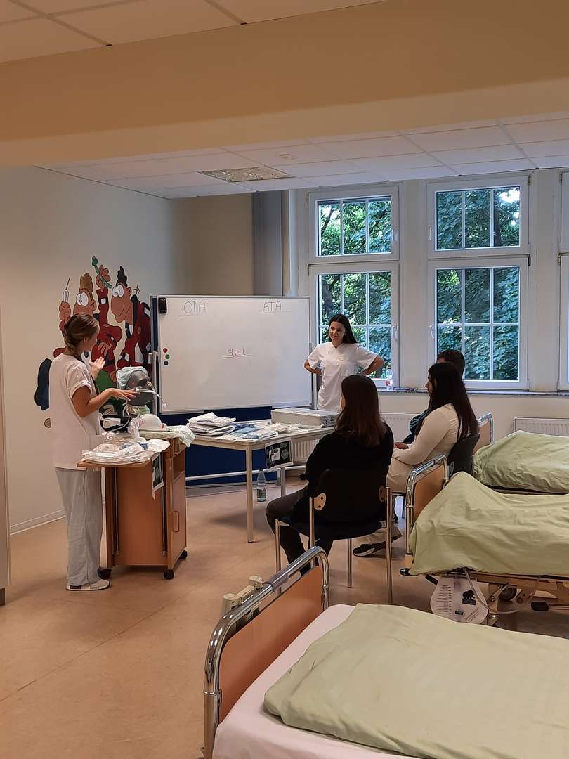Am 09.09.2025 fand ein spannender Projekttag für unsere Schülerinnen und Schüler der 9. Klasse statt: Unter dem Motto „Pflege erleben im Skills Lab“ wurde ein praxisnaher Einblick in verschiedene medizinisch-pflegerische Berufsfelder ermöglicht, darunter Hebamme, OTA (Operationstechnische Assistenz) und ATA (Anästhesietechnische Assistenz). Organisiert und durchgeführt wurde die Veranstaltung von der GLG Gesellschaft für Leben und Gesundheit mbH in der Akademie der Gesundheit, Campus Eberswalde.
