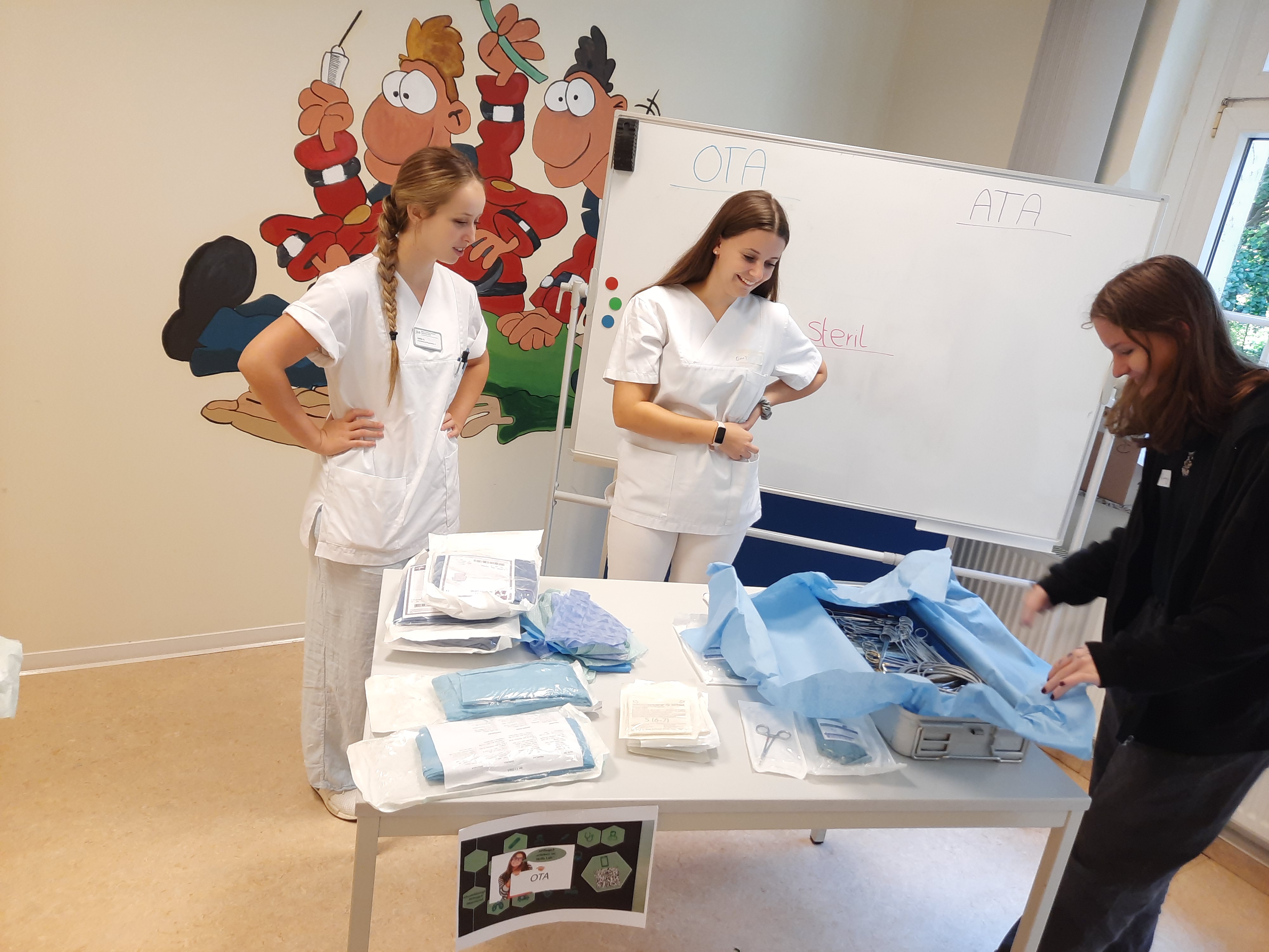 In einem realitätsnah gestalteten „Skills Lab“ konnten unsere Schülerinnen und Schüler typische Tätigkeiten dieser Berufe kennenlernen und sich unter fachkundiger Anleitung selbst ausprobieren. Sie erhielten einen ersten Eindruck von der Vielfalt der Tätigkeiten und den Anforderungen der Berufe. Dieser Aktionstag bot eine gute Gelegenheit, sich vor Ort zu informieren, sich mit Fachkräften und Auszubildenden auszutauschen und erste praxisnahe Erfahrungen zu sammeln.